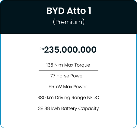 Miliki BYD Atto 1 , dengan Fasilitas Kredit